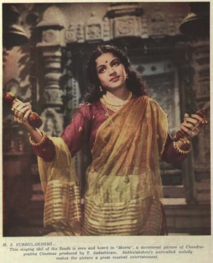 Meera (1945), is one of Dungan’s most well-known films and his favorite as well. The film starred famed Carnatic musician MS Subbulakshmi, who played Meerabai. Originally a huge Tamil hit, the equally successful Hindi version made a couple of years laterin 1947 had the great Sarojini Naidu introduce Subbulakshmi to a North Indian audience. The Hindi version premiere was attended by Lord and Lady Mountbatten and Jawaharlal Nehru among others. Her rendering of Meera Bhajans in Hindi remained for years the definitive version of Meerabai’s immortal lyrics.The Tamil version is known for some of novelist Kalki’s best work as a lyrics writer, in particular the song Katrinile Varum Geetham. It is said that Dungan and his cinemtographer used a mould of Subbulakshmi’s face and shot it at various angles with different lighting techniques. After viewing the results, they chose the best ones to create Meera’s ethereal, angelic beauty. The scene where a young Meera changes into adulthood through the songs, Nanda Bala En Manala (young Meera) and Murali Mohana (adult Meera) with an interlude piece in between to show the passage of time remains much admired even today as does the sequence showing the spread of the popularity of Meera’s songs across the country.