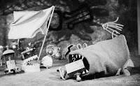 Mysterious and creepy stop-motion film from Poland- a burlap sack proceeds to consume everything in sight, until all the objects- scissors, sewing machines, etc. revolt, organize and subdue it.