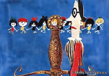 A much darker vision from the man that brought us the joyful and colorful Little Mole cartoons.  A somber tale of fisherman and his small son who try to retain peace after they discover that their country has been invaded and that an armory has been established near their house. The blood of the peaceful protestors becomes a swath of red flowers that grow all around the armory and force it to shut down.  Miler made the film to break free from his little mole rut and try something different; a moving and thoughtful piece drawn simply with charcoal on paper.