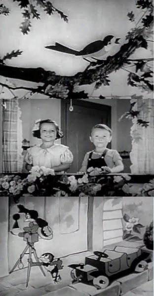 Official Films' Tiny Tots series blended live action children with cartoons. A couple of youngsters are discussing the title phrase when an animated bird flies up to set them straight about the bird network of spies that apparently are more omnipresent than Big Brother (or Big Data in these times).