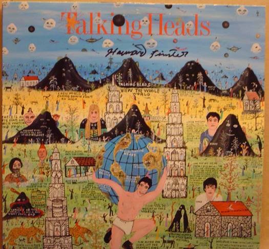 Finster’s cover for Georgia-based R.E.M.’s Reckoning (1984) depicted a twisting snake upon which the album’s song titles were written. The group also filmed the video for “Radio Free Europe” in Paradise Gardens in 1983. The art for the Heads’ Little Creatures (1985) included caricatures of the bandmembers — including David Byrne in his underwear, carrying the world on his shoulders