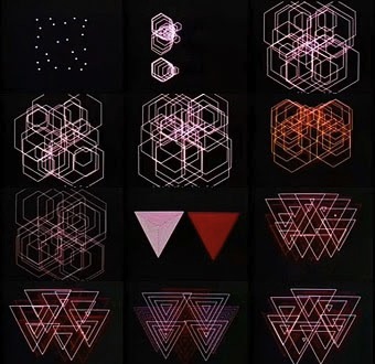 This seldom-seen film, programmed on a computer and then optically printed explores the graphic permutations of a Persian pattern. The spectacular, fast-paced film features quilt like tapestries of polyhedral and crystalline figures pulsating and multiplying with a kind of universal logic eliciting a hypnotic, trancelike effect from the viewer. This film echoes a preoccupation with the mandala image and the interest in Eastern meditative philosophy that is seen in the work of the whole Whitney family.