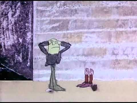 A witty cartoon from Borivoj Dovniković that celebrates those that dance (or walk as it were) to their own drummer. A little man has his own unique walk, but everyone he passes seems to think their own walk is better and feels compelled to push it on the little man until he is walking like a crippled Frankenstein monster. Our hero decides that he's happy walking his own way, regardless of what other people think.