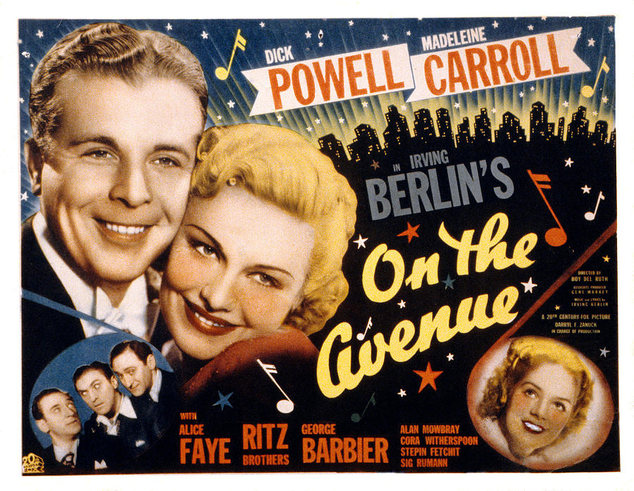 Dick Powell, Alice Faye and the Ritz Brothers sing and dance down the avenue in a highlight reel from the stylish musical comedy from Irving Berlin. A curtain opens on Alice Faye who sings "Let's Go Slummin'." She is joined by a dancing, singing troupe of players who "go slummin'" on Park Avenue. Then the Ritz Brothers cross-dress to parody Faye's performance. With other numbers including "I'm Still Wearing Last Year's Love" and Dick Powell reprising "Let's Go Slummin'" to his bride to be.