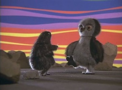 A hungry owl, Ookpik, spies a plump, sleeping lemming, a potential feast for his family. He captures the lemming, who readily surrenders but then encourages Ookpik to indulge in a sort of victory dance, praising the owl as the finest dancer in all the land. The owl proceeds to get drunk on his vanity, losing himself in his dance and providing his prey with the perfect opportunity for escape. This stop motion animation, touching on the dangers of flattery, employs a beautiful sunset backdrop, whose smooth curves undulate slightly, which, combined with a serene score of Eskimo chanting, creates a subtly hypnotic atmosphere.