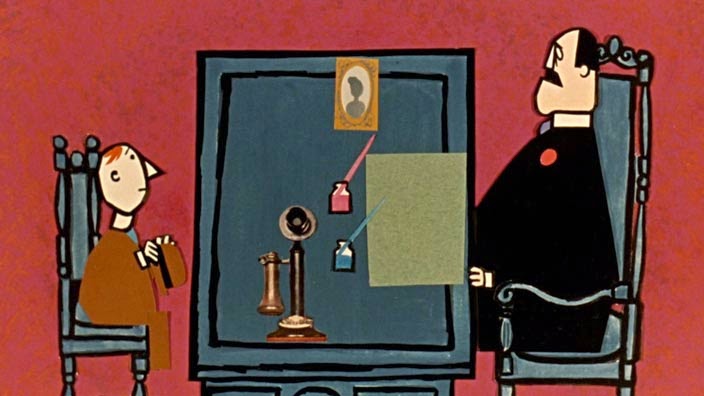 My Financial Career (Color, 1962)A wry and stylish retelling of Stephen Leacock's essay, directed by Gerald Potterton with fabulous mid-century cut-out animation by the great Grant Munro. A man tries his best to start a bank account only to get so overwhelmed by the institution, he bungles the whole transaction.