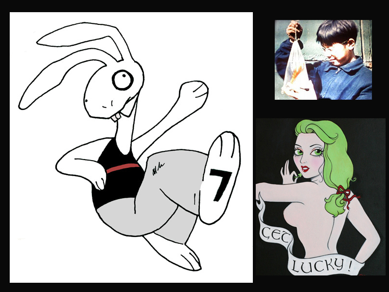 Lucky Charms commercial. Pretty much as you remember it. Unlucky rabbit, annoying, hyperglycemic white kids.