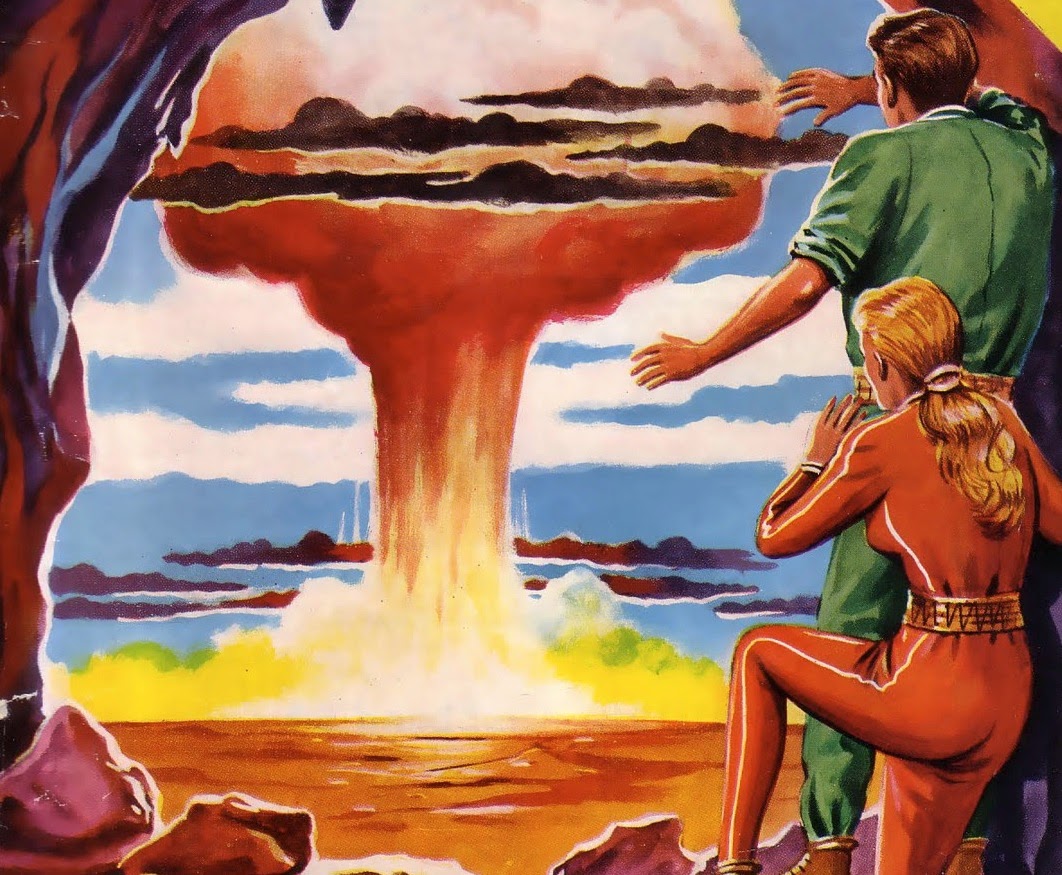 Operation Cue was the name given small nuclear weapons tests run in Nevada in 1955 to check their effects on buildings, towers, and equipment of many kinds. Watch as The Office of Civil Defense builds various types of shelters, decorates them and populates them with tons of creepy mannequins before blowing up the entire town in order to learn the effects of a nuclear explosion on mannequins in a ghost town! Reporter Joan Collins (no, not that Joan Collins) walks around the grounds immediately after detonation in stylish pedal-pushers, but no protective gear.