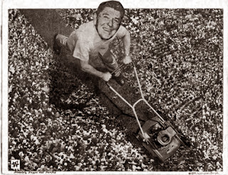 Punk Art Sur­re­al­ist Win­ston Smith, a mas­ter of “hand-carved” col­lage, has been craft­ing his thought-provoking art since the 1970’s. After being abroad for six years, Win­ston returned to Amer­ica and was aston­ished by the com­pla­cency the Amer­i­can pub­lic exhib­ited towards the cor­po­rate dom­i­na­tion in their soci­ety.  Win­ston began tak­ing “safe” images from mag­a­zines and com­bin­ing them to cre­ate polit­i­cally charged works of art that chal­lenge the viewer to con­front incon­gruities and polit­i­cal para­doxes of mod­ern soci­ety.