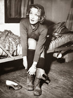For an enterprise involving so much metal and machinery there certainly is a lot of sewing! Many of the skills women have naturally are needed for the nation's defense. Tiny ball bearings and other precision instruments need the touch of well-manicured feminine hands. Or at least this is what the narration, written by Eleanor Roosevelt and read by a very Katharine Hepburn-sounding Katharine Hepburn, would have you believe.