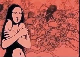 This excerpt from the groundbreaking “Mondo Cane” has famed artist Yves Klein utilizing human paintbrushes on a giant canvas. Klein, a student of Eastern spirituality was on a quest for pure color and form. His live performances were groundbreaking precursors to minimalism, conceptual, land and performance art. Klein was a showman and one of his most famous events was the imprinting of paper with naked models smeared with his trademark blue paint, as he