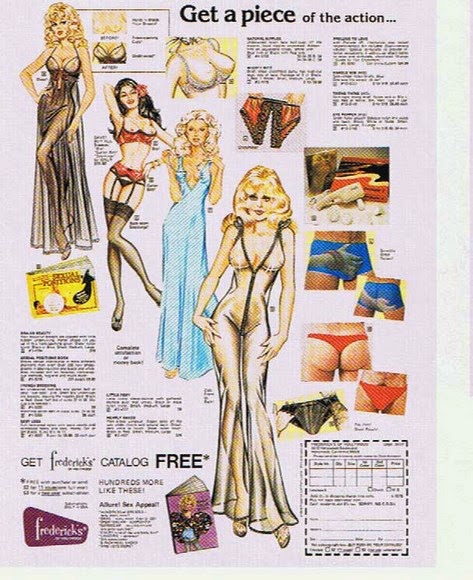 The appeal is sex. We see models prancing around in ridiculous lingerie, and extolling the miracle of padding in all of the right places, old ladies opening mail in the mail order department and couples selecting sexy underwear. The clothes are designed to please men; to put a man in their life and a little life in their man. Since women aren't born equal its Frederick's of Hollywood's job to make them more equal. Does Frederick's of Hollywood treat women like sex objects? Of course, that's the point.