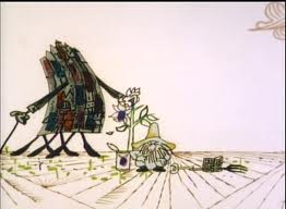 An entertaining anti-war allegory of two soldiers on either side of a border line. When one soldier's hat flies off onto the other side of the border, he and the opposing soldier get into a fascinating conversation on the nature of aggression, adaptation and the absurdity of war. The soldiers voices are none other than Dudley Moore and Dizzy Gillespie, who improvised their parts in the Hubley's kitchen. For an in depth examination of The Hat, check out Michael Sporn's article here: http://www.michaelspornanimation.com/splog/?p=2769