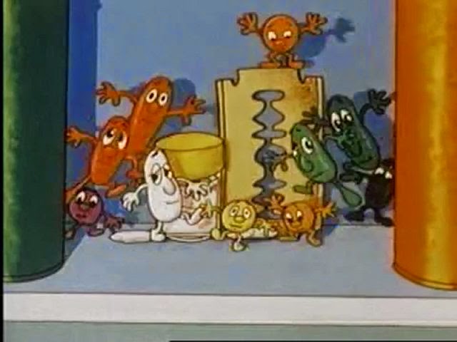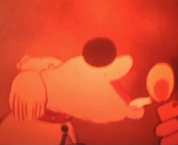 Absolutely twisted animation featuring a troll-like little boy with a massive head who drags his sick dog Sniffy to the medicine cabinet.  Once opened, the pills and syrups begin to sing and dance as they cheerfully tell the little boy to KEEP HIS GRUBBY LITTLE PAWS OFF or risk a painful overdose and death.