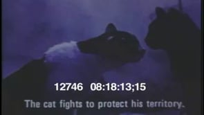 Cats hissing and fighting; subtitles