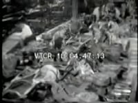 TV Dinner factory assembly line. Whole chickens being sliced with a saw…