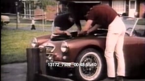 Group of teenage boys riding in the back of a car. Driving hot rods on…