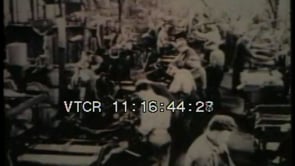 Workmen operating large industrial auto-manufacturing machinery,…