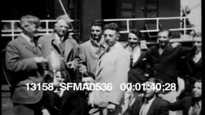 Silent film. A close look on one of the ships. Men walk and talk on…