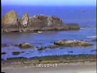 Shot of a rainbow over the ocean. Close up of one side of the rainbow…