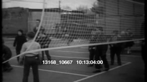 MS of kid shaking round object. WS of a crowded place. WS of men in…