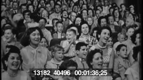 Audio is silent. Film starts with a close-up of a man in the audience…
