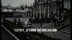 Swedish men sit outside at cafe in Sweden during W.W.II, listen to live…