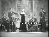 A couple dances a slow tango in front of a curtain and some potted…