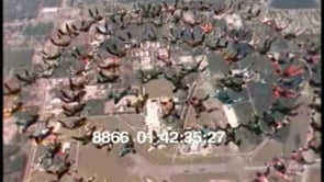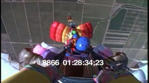 Female skydivers stack one on top of the otherStacked parachutes in air…