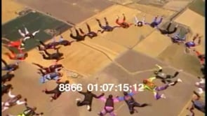 Skydivers form a spiral formation in the air
