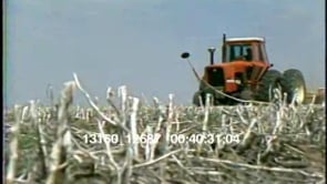 MS of red tractor with plow driving away from camera. LS of tractor…