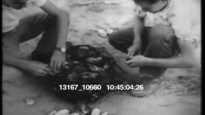 “Diving for Buttons!” A man with a scuba mask walks into a river to…