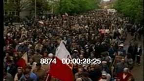 Nazi soldiers walk past Jewish people boarding train. People sit in…