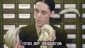 CU of a man looking at a book, with a CU of the books pages in a…