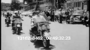 Black and white. Shot of three motorcycles riding towards the camera. A…
