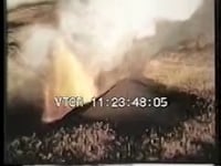 A jet of lava comes bursting out of black rock accompanied by music and…