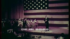 Nixon on stage before an enormous American flag, speaks to a crowd…