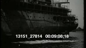 Shot of a bunch of soldiers without a life preserver jumping off a boat…