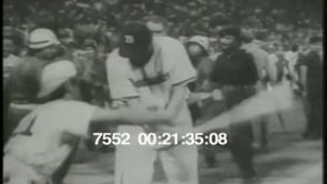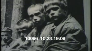Soviet soldiers march in unison down the street, men carry flags, play…