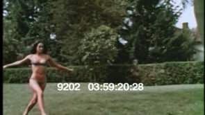 A blonde in a bathing suit cartwheels toward the camera, and a brunette…