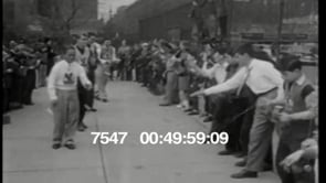 Shows a 400-meter relay race from the 1936 Summer Olympics in Berlin…