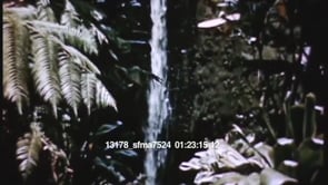Tourists in Hawaii. Scenic shot of a waterfall and tropical plants. CUs…